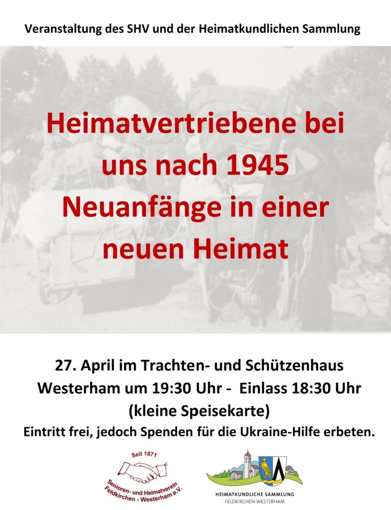 Am 27. April 2022 wurde ein Vortrag von Alfred Trageser im Trachten- und Schützenhaus gehalten. Der Arbeitskreis "Heimatvertriebene in Feldkirchen-Westerham" hat den Vortrag zusammen mit Alfred Trageser zusammengestellt.